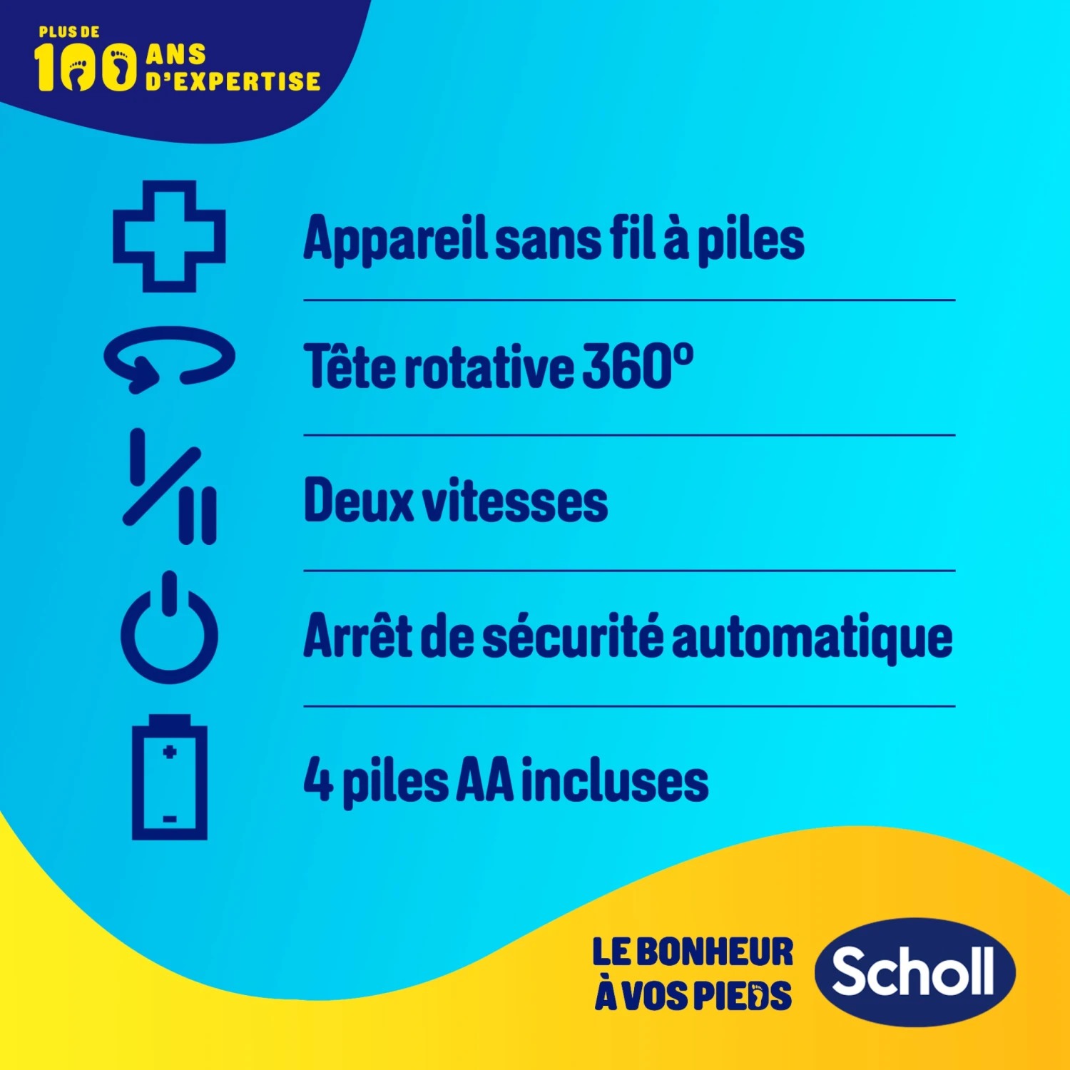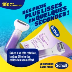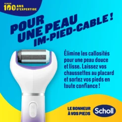 Grâce à son rouleau double action exfoliant et lissant, la Râpe électrique Pieds Scholl adoucit la peau en éliminant les callosités dures et tenaces en quelques minutes, vous permettant d’obtenir de beaux pieds que vous n’hésitez plus à montrer. C’est si facile à utiliser ! Faites des mouvements réguliers en exerçant une pression légère à moyenne sur les callosités et vous verrez la peau morte disparaître. Sa poignée au design ergonomique rend l’utilisation très agréable.