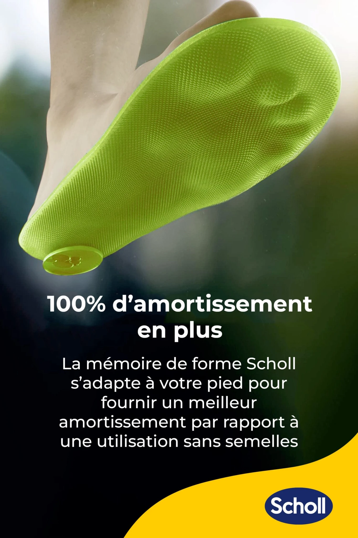 - Jusqu’à 60% d’absorption des chocs en plus* (*par rapport au port de chaussures sans semelles)
